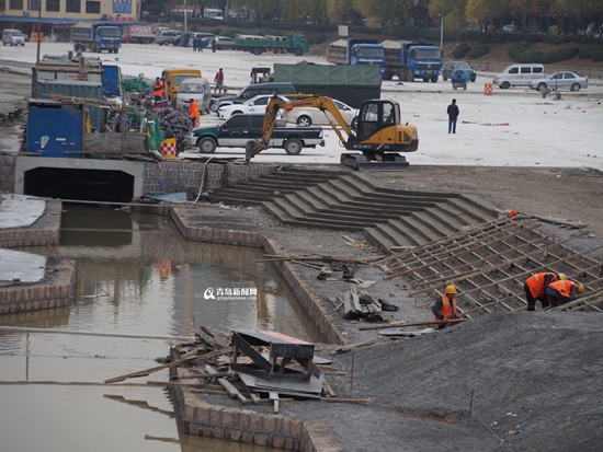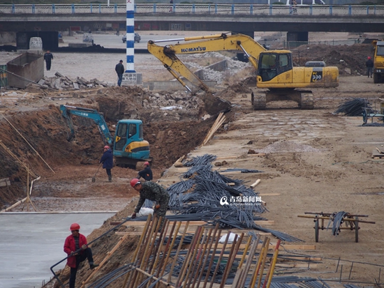 ????25日,記者在李村大集河道改造現(xiàn)場看到,李村大集改造雛形已經漸漸顯現(xiàn),河道蜿蜒曲折兩側已經做了堤壩,地面也已經做了硬化,不少工人正在緊張施工中。據(jù)了解李村大集段將進行清淤、截污、護坡、美化綠化,建成河流和大集并存,商貿和休閑一體的景觀工程,李村大集也不用搬遷了。(記者 澄澈)