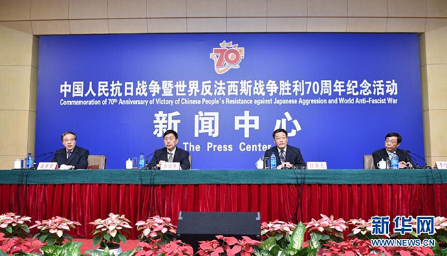 ???? 8月28日上午10時,抗戰(zhàn)勝利70周年紀(jì)念活動新聞中心邀請中國社會科學(xué)院副院長李培林,近代史研究所副所長汪朝光,近代史研究所研究員李學(xué)通介紹中國人民抗日戰(zhàn)爭勝利的偉大歷史意義等方面情況。圖為發(fā)布會開始。新華網(wǎng)郭小天 攝