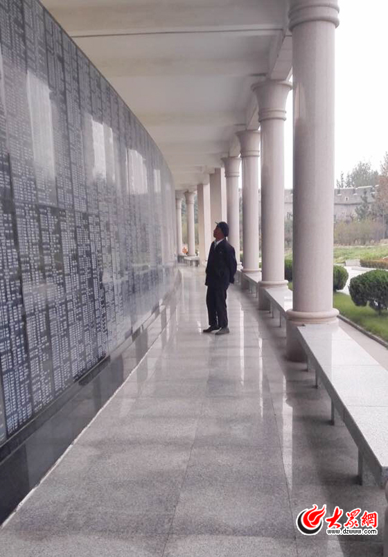 從紀(jì)念館出來已近黃昏,經(jīng)過一個(gè)廣場就來到長達(dá)162米的渤海革命老區(qū)烈士英名錄碑廊,四大塊黑色大理石碑上密密麻麻地鐫刻著55308名烈士的名字以及他們的籍貫、職務(wù)和犧牲地點(diǎn)。短短的一行,寥寥數(shù)語,就概括了英雄的一生,黑底白字的莊嚴(yán)如泣如訴,輕撫那一個(gè)個(gè)名字,用指尖感受歷史的溫度,他們大部分還是十八九歲、二十多歲的小伙子,正是人生風(fēng)華正茂的時(shí)候,但他們卻毅然決然的拿起槍跟著共產(chǎn)黨走,為了建立、保衛(wèi)新中國,獻(xiàn)出了自己寶貴的生命,他們的一生是短暫的,但卻是生的偉大死的光榮。正在我們細(xì)細(xì)地瞻仰烈士英名的時(shí)候,發(fā)現(xiàn)長廊那頭有一位老大爺正湊在碑石前,佝僂著背脊,在一個(gè)一個(gè)名字地搜尋,我們走過去詢問,他用含混不清的方言說他在找他犧牲的哥哥,但是沒找到,我只聽出來烈士姓魯,我們一行人幫忙找了好一陣未果,因?yàn)樾谐痰年P(guān)系我們不得不離開時(shí),老大爺還在執(zhí)著地搜尋,也許在我們看來那只是刻在石碑上的短短一行寥寥數(shù)語,但對于烈士的親人來說那卻是對心底思念的傷痛最深的慰籍。