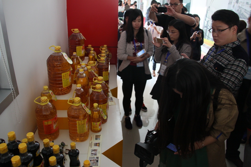 采訪團(tuán)記者參觀魯花的產(chǎn)品