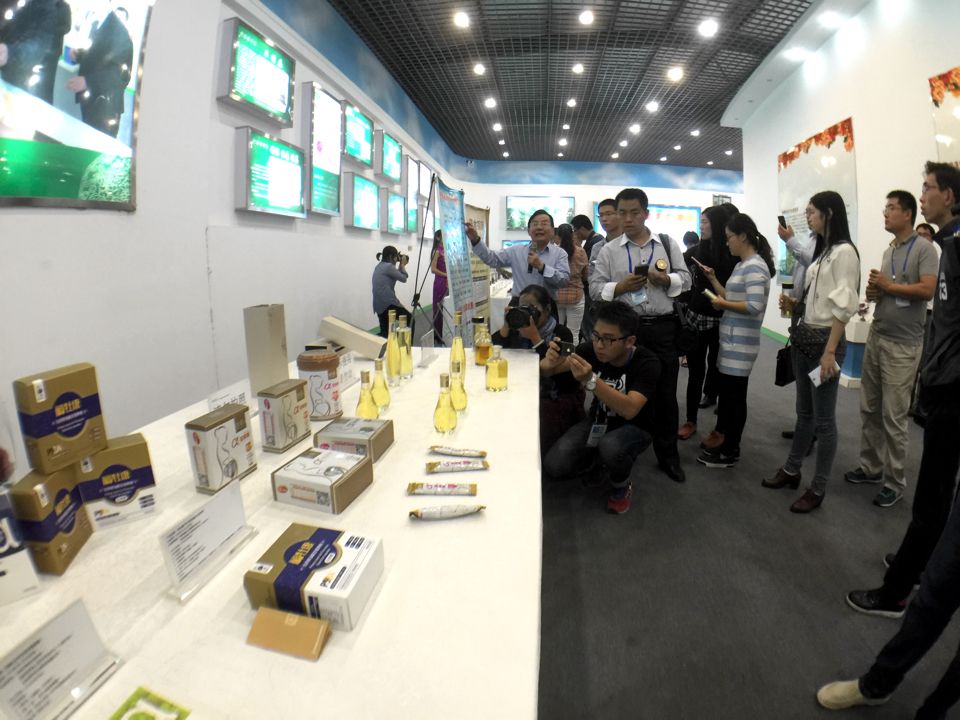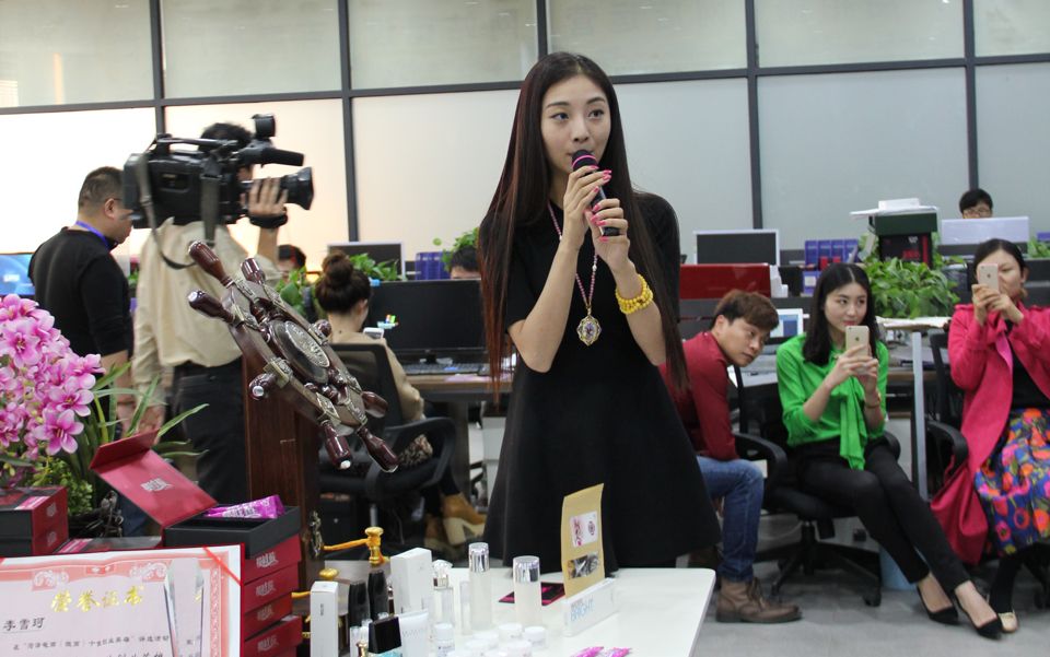 ????堯舜牡丹公司生產(chǎn)的琳瑯滿目的牡丹化妝品吸引了采訪團(tuán)記者們的鏡頭。