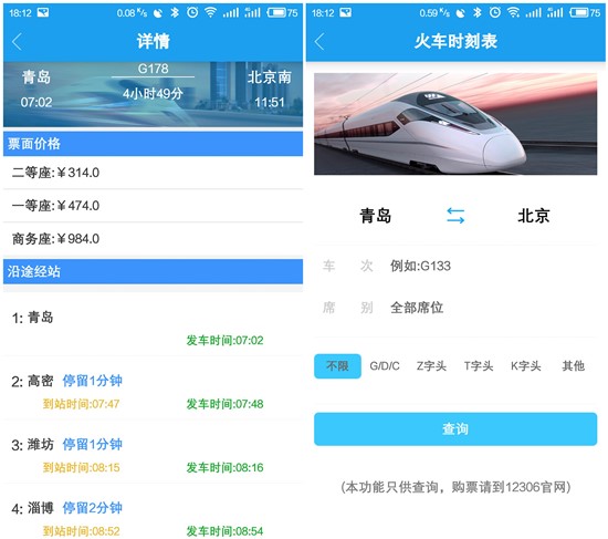 火車時刻為市民提供列車時刻、票價、經停站等信息查詢服務。后期計劃探索與第三方合作提供網上購票服務。