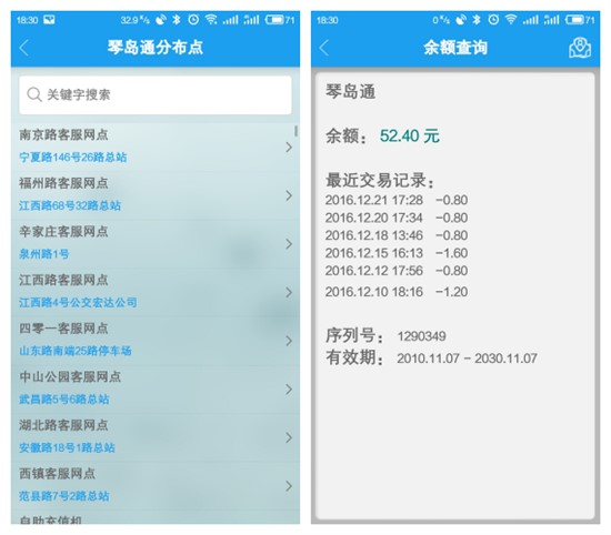 為市民提供青島市區(qū)琴島通卡充值點位置查詢服務和琴島通卡余額查詢服務(需要手機支持NFC功能)。