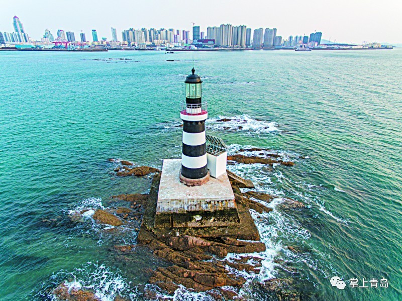 是船舶進(jìn)出青島港的重要的助航和定位標(biāo)志。它始建于1904年,高12米,是白色八角形石塔,配備的主燈射程3海里。從空中俯瞰,白色的燈塔矗立在美麗的小青島上,清澈的海水拍打著礁石,美不勝收。
