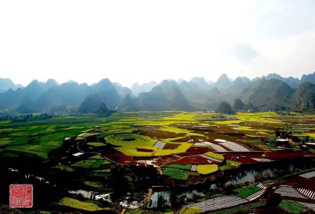 ????對于興義,明代知名地理學家徐霞客似乎尤為偏愛,“天下名山何其多,唯有此處成峰林”“磅礴數(shù)千里,為西南奇勝”,短短兩句,便概括了萬峰林的美景。金色的油菜花田下,座座山巒在花間佇立,一個小小的村莊在田里悠哉的過著屬于自己的生活。