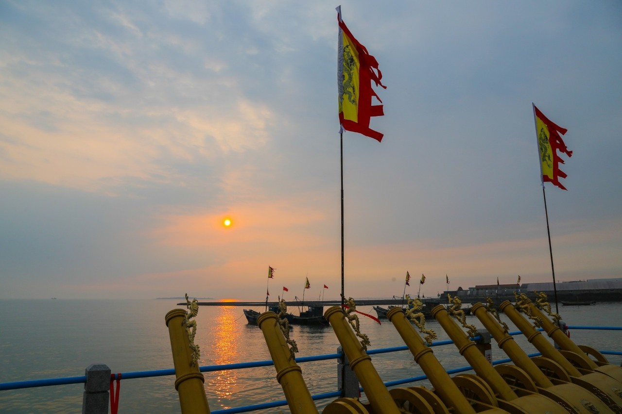上千掛鞭炮在海灘邊一字排開,良辰吉時(shí)一到,鞭炮齊鳴、鑼鼓喧天。