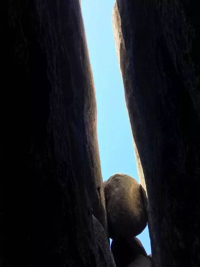 沿著山路蜿蜒向上??斓巾敃r,有一段路需要從很多巨石之間的洞穴縫隙里爬過,更有一線天等不易通過的險隘道路。