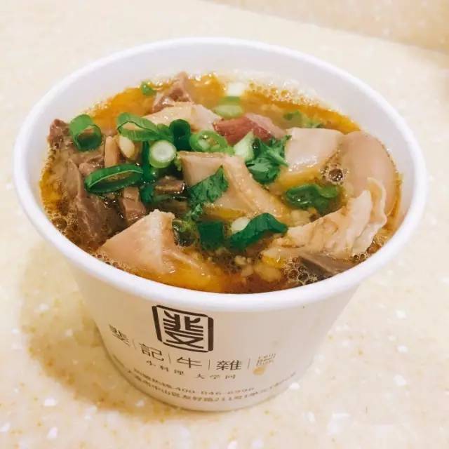 牛雜、牛肉、牛肉丸分別在自己的金屬宮格里煮,老板先在小小的圓紙盒里鋪一層入味的蘿卜,然后撈出食材拿剪刀剪,就做好啦。小香蔥、香菜跟剁椒加入不會(huì)那么膩。這家鹵汁的味道很醇厚,各種下水不會(huì)有腥味。湯頭很好喝,濃濃的牛肉湯,端起碗來(lái)一飲而盡。一碗吃罷根本不過(guò)癮!