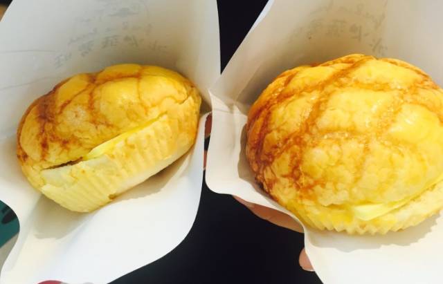 完美的口感,香酥微燙的菠蘿包,遇見(jiàn)了冰爽的黃油,黃油稍微有點(diǎn)微咸,涼涼的夾在菠蘿包之中,不會(huì)很油膩,讓菠蘿包的味道瞬間升華了~