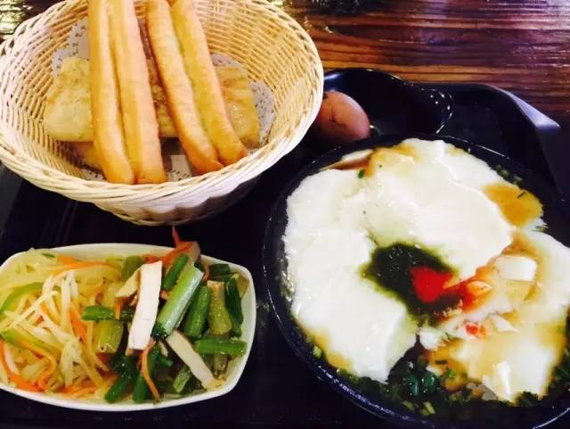 青島本地老字號(hào),主打菜豆腐腦的味道很是不錯(cuò),里面有肉塊、黃花菜等非常豐富。另外還有小菜可選擇??梢耘湟粋€(gè)火燒,他家的火燒好焦好酥,層次分明,配上咸咸的豆腐腦正好。