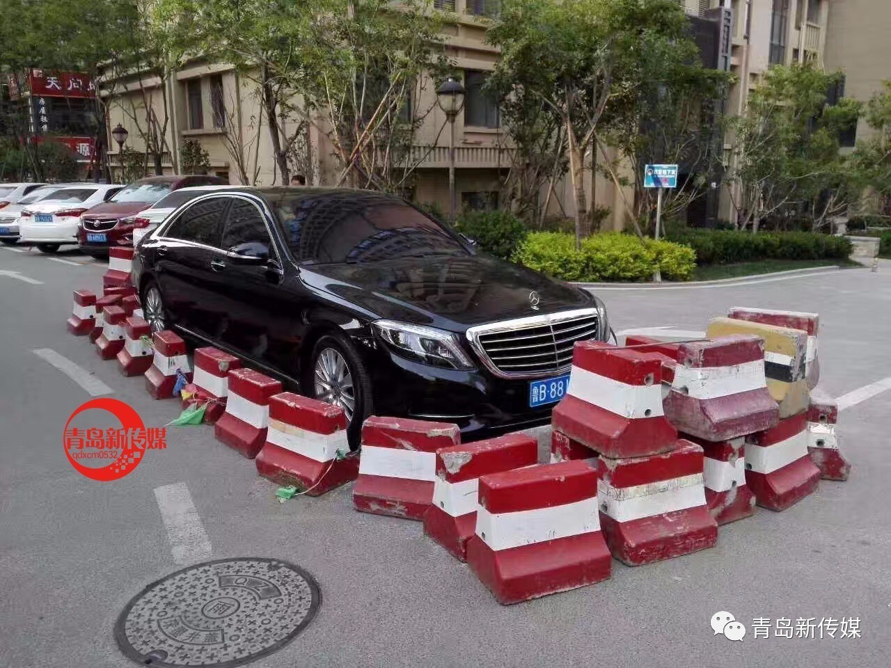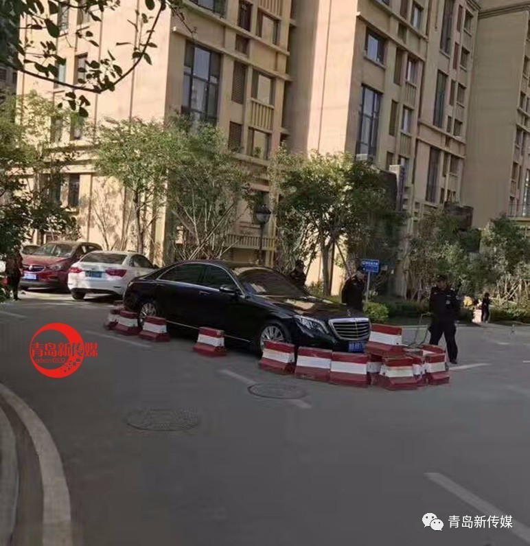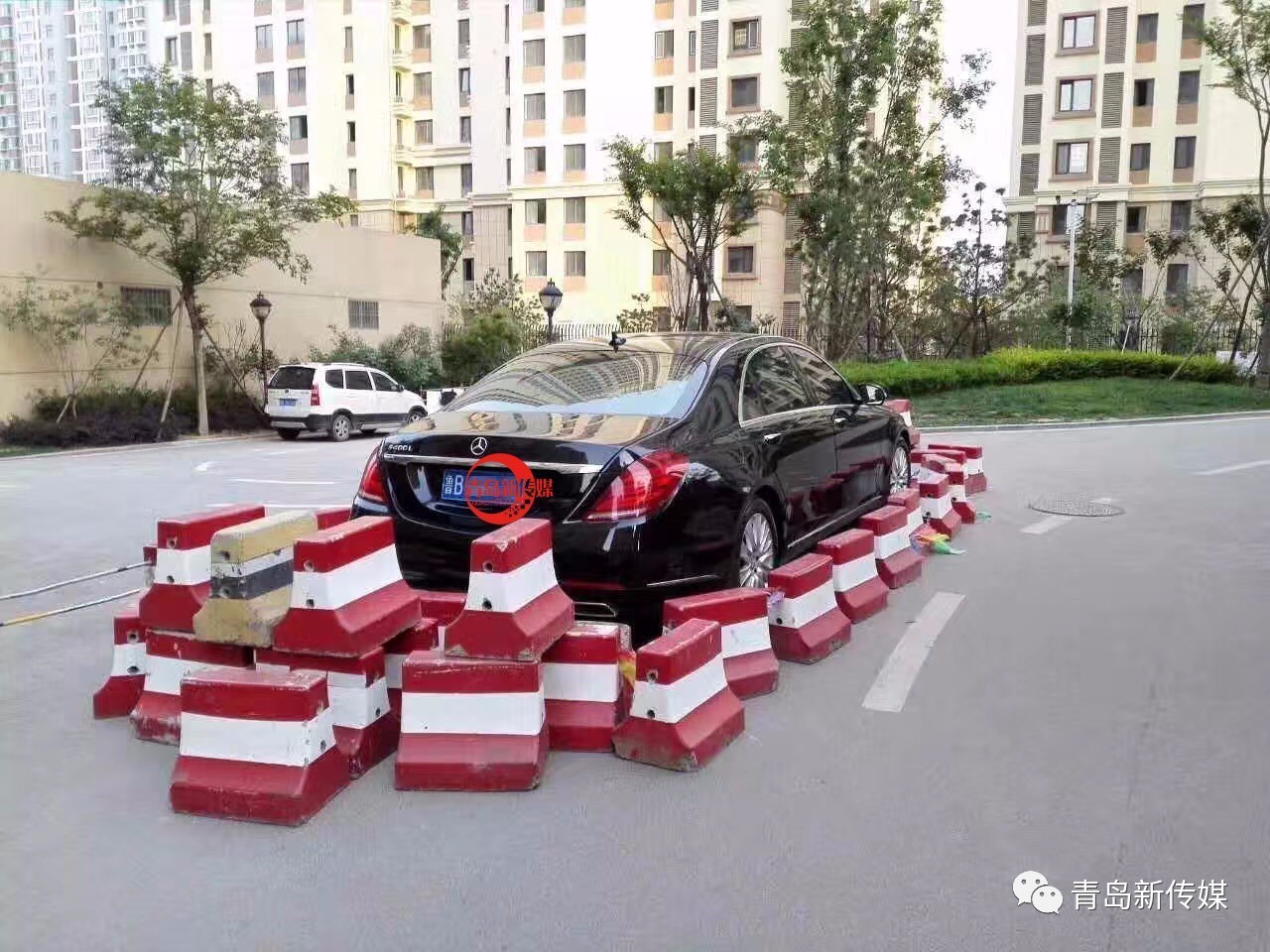 青島某小區(qū)內(nèi),一奔馳車亂停放在小區(qū)路中間,第二天起來一看,被石墩包圍了……
