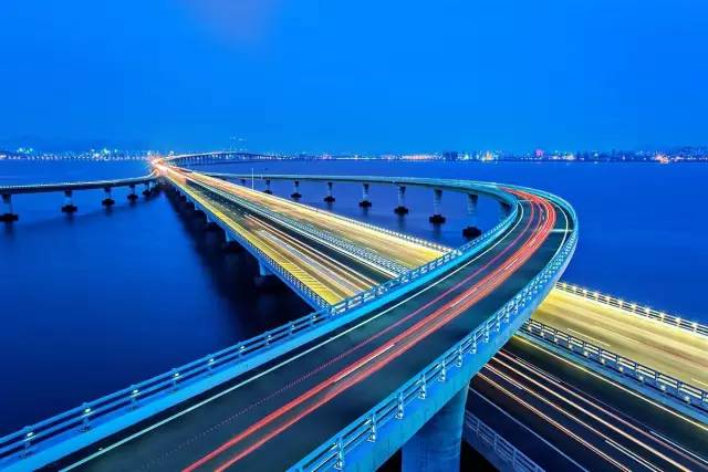 青島跨海大橋為跨越膠州灣、銜接青蘭高速公路的一座公路跨海大橋,全長41.58千米,是世界上已建成的最長的跨海大橋。