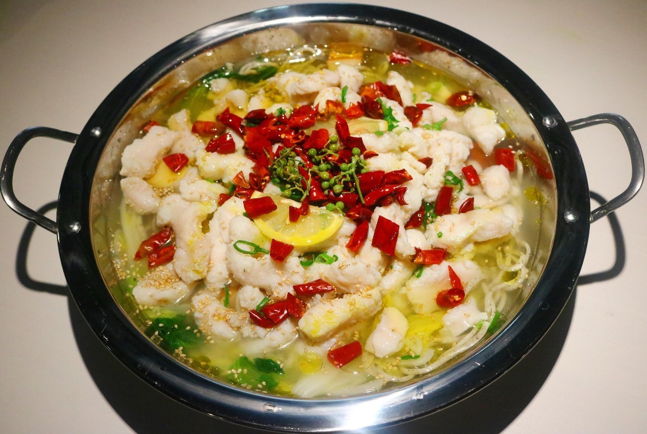這家店無論在哪里開,永遠(yuǎn)都是人人人人人!到飯店必排起長龍,不大的小店里都被吃客們包圍啦。酸湯龍利魚面,魚肉、酸湯、面條、辣椒、花椒…統(tǒng)統(tǒng)呈現(xiàn)在眼前,還撒了幾片檸檬,就像披上一層黃金甲,吃過的魚面中,它的顏值真是數(shù)一數(shù)二的。