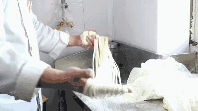揉面、抻面,拉面的手法并沒有什么花哨的,做面的師傅手法十分嫻熟,拉好的面在面板上一拍,飛起的面粉就是這西鎮(zhèn)的煙火味。
