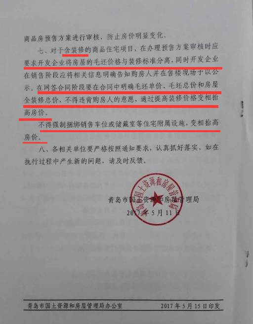 3、通知特別強調,含裝修住宅,網簽合同中必須標明裝修總價,不得違背購房人意愿,通過提高裝修價格抬高房價。也不得強制捆綁車位、儲藏室銷售,變相抬高房價。