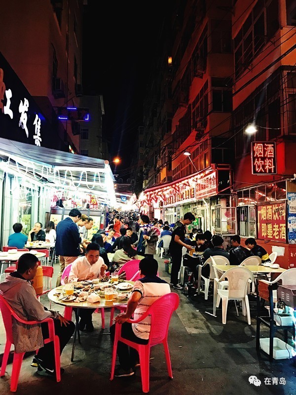 ????▲華燈初上,營口路街邊大大小小的啤酒屋開始熱鬧起來,透著濃濃的煙火氣兒。攜三五知已,來這兒點上一盤蛤蜊再來兩扎酒,對酒當(dāng)歌,只愿開心到老。