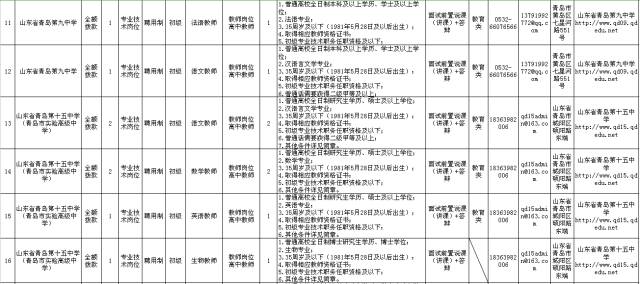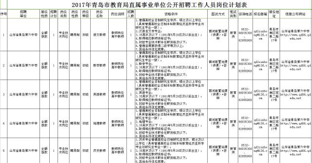 2017年青島市教育局部分直屬學校計劃面試前置公開招聘聘用制工作人員41人、差額撥款事業(yè)編制工作人員4人,青島市教育科學研究院公開招聘全額撥款事業(yè)編制工作人員6人。招聘教師崗位涉及語文、數(shù)學、英語等多個學科,大多需要研究生以上學歷,采用面試前置的方式。