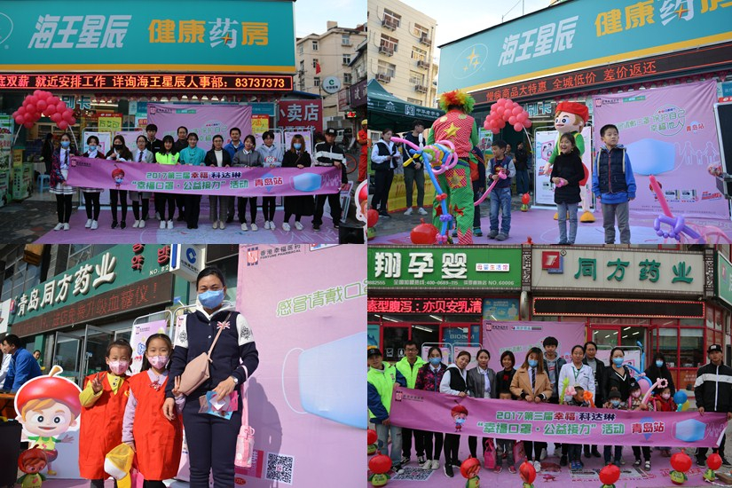 為此,香港幸福醫(yī)藥有限公司特意將“感冒請戴口罩,保護(hù)自己,幸福他人”健康理念改編成既輕松又能預(yù)防感冒的“幸福口罩舞”。聯(lián)合青島市海王星辰健康藥房連鎖-寧夏路店、富源一路店和青島同方藥業(yè)連鎖-同方82店、同方51店四大藥店一起歡樂起舞,由香港幸福醫(yī)藥的吉祥物車?yán)遄袔ьI(lǐng)著青春活力的女生來舞動(dòng)全場,現(xiàn)場也吸引了很多市民情不自禁跟著車?yán)遄幸黄饸g樂起舞,帶來一場活力四射的幸??扉W?,F(xiàn)場還有小丑千變?nèi)f化的魔術(shù)表演讓現(xiàn)場小朋友和家長不斷歡呼,拍手叫好。