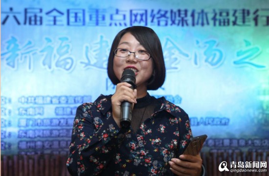中國甘肅網(wǎng)副總經(jīng)理趙燕萍代表參加此次活動的媒體記者發(fā)言,她說福建的青山綠水留下了深刻印象,今后將積極深化旅游宣傳與福建的聯(lián)系,共同推進(jìn)陸上絲綢之路與海上絲綢之路的旅游協(xié)作。