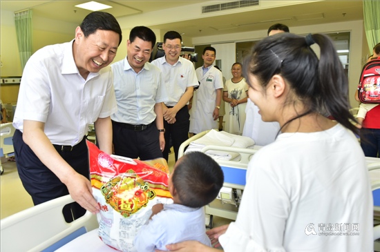 7月2日下午,市衛(wèi)計委黨委書記、主任楊錫祥等一行與青島阜外醫(yī)院上級部門的青島港集團黨委書記、董事長鄭明輝來到心臟中心看望了在院手術(shù)的患兒和陪同的家長。楊錫祥代表衛(wèi)計委給予本次救助活動8萬元資金支持,安順市陪同來院的工作人員、關(guān)嶺縣婦幼保健院徐俊代表患兒及家屬接受捐助。