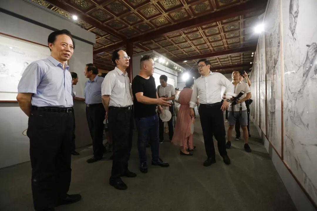 文化部、中國(guó)文聯(lián)、中國(guó)美術(shù)家協(xié)會(huì)、中央黨史和文獻(xiàn)研究院、外交部、中組部、全國(guó)人大、全國(guó)政協(xié)、中央美術(shù)學(xué)院、國(guó)防大學(xué)、中國(guó)美術(shù)館、中國(guó)文聯(lián)團(tuán)委、山東省文聯(lián)、山東省美協(xié)、國(guó)家畫院、國(guó)家京劇院、中國(guó)藝術(shù)研究院、北京畫院、北京大鸞翔宇基金會(huì)、淮安周恩來(lái)紀(jì)念館、人民出版社、北京工藝美術(shù)出版社、平度市文廣新局等有關(guān)領(lǐng)導(dǎo)、代表及著名藝術(shù)家、新聞網(wǎng)絡(luò)媒體、央美原創(chuàng)師生等近千人參加了畫展開(kāi)幕式。