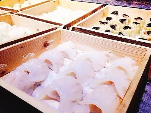 鮮活的刺身檔:挪威三文魚、冰點(diǎn)北極貝等