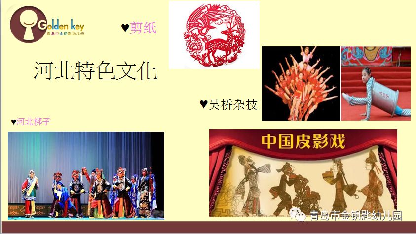 吃之余,老師還給孩子們介紹了河北的特色文化:皮影戲、河北評(píng)劇、河北梆子、吳橋雜技…