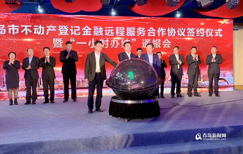 在簽約儀式現(xiàn)場,青島市國土資源和房屋管理局局長張希田、人民銀行青島市中心支行副行長王富全、市國土資源和房屋管理局副局長潘奇、市政務(wù)服務(wù)和公共資源交易管理辦公室副主任張會(huì)佐及青島市不動(dòng)產(chǎn)登記中心主任于翠成等領(lǐng)導(dǎo)出席簽約儀式并現(xiàn)場簽約,簽約結(jié)束后,由青島市政府分管副市長、市國土資源房管局局長及人民銀行青島市中心支行副行長共同按動(dòng)青島市不動(dòng)產(chǎn)登記金融遠(yuǎn)程服務(wù)平臺(tái)啟動(dòng)按鈕,宣布該平臺(tái)正式啟動(dòng)。