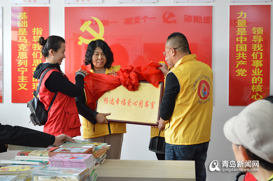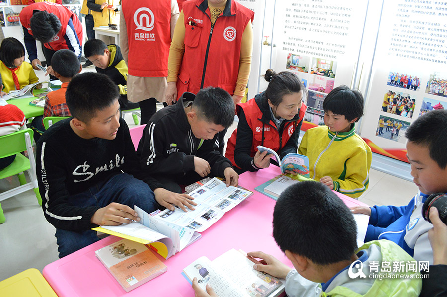 活動中,志愿者們?yōu)榱羰貎和⒇毨W生建立了“暢達幸?!睈坌膱D書室,將帶著青島地鐵美好祝愿的一本本書籍,整齊的排列在書架上,同時向孩子們科普地鐵知識,解答孩子們對地鐵的好奇,傾聽孩子們心聲,了解孩子們的心愿。