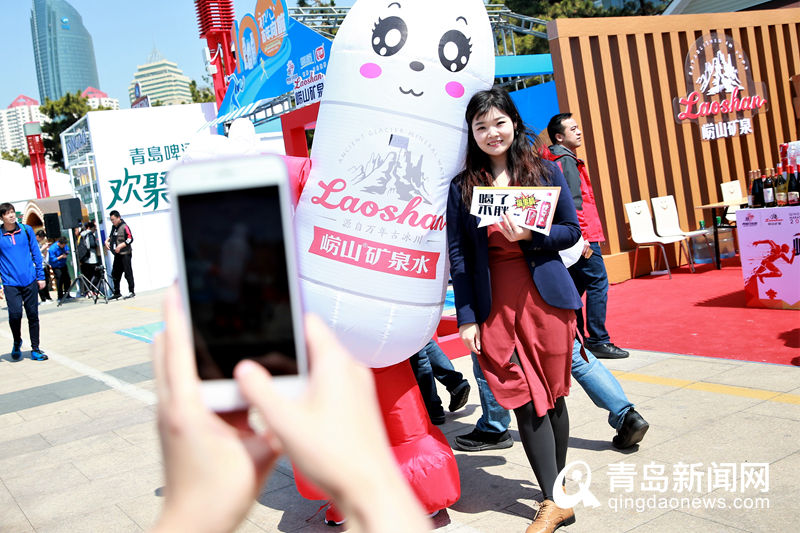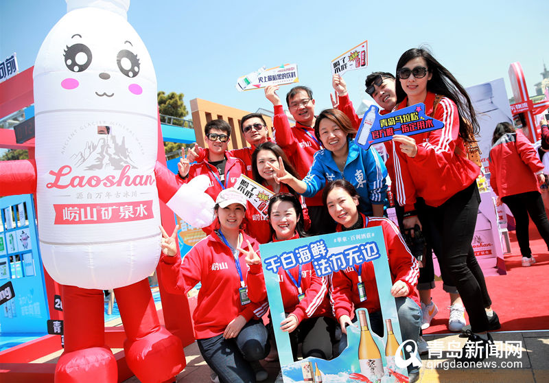 嶗礦的礦泉水玩偶也成了大家爭相合照的明星。
