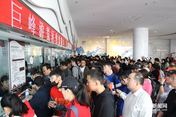 嶗山巨峰景區(qū)游客有序排隊(duì)買票。