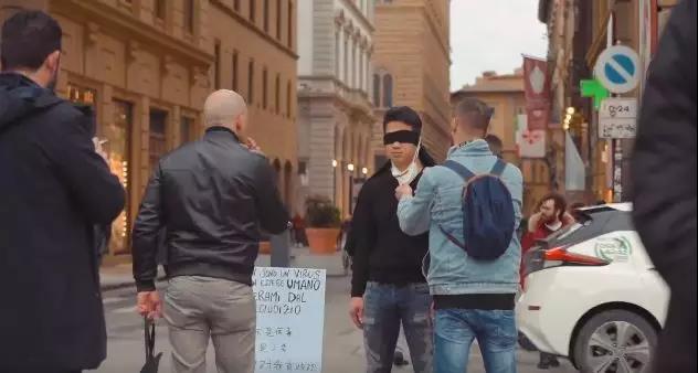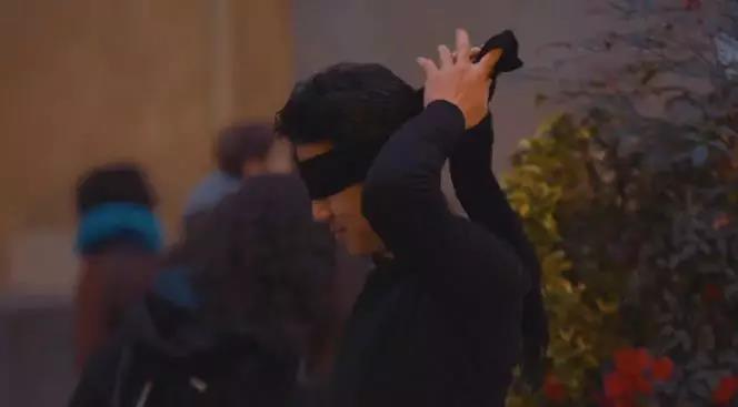 有人主動(dòng)給小伙褪去蒙眼的圍巾。