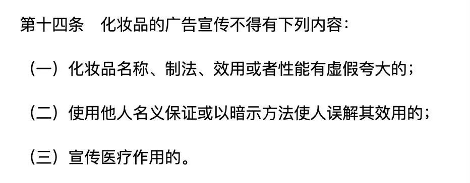據(jù)我國現(xiàn)行《化妝品衛(wèi)生監(jiān)督條例》第十四條規(guī)定,化妝品不得宣傳療效,不得使用醫(yī)療術(shù)語,廣告宣傳中不得宣傳醫(yī)療作用。