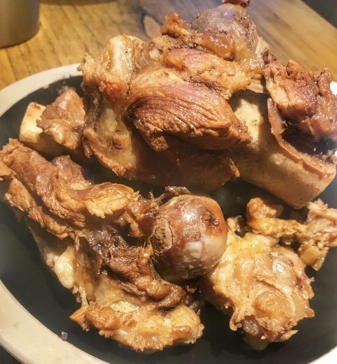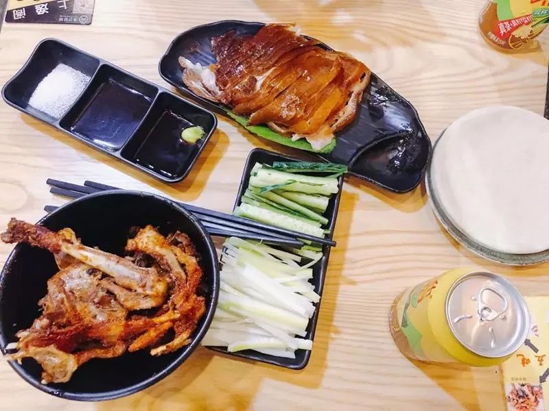 每次排隊(duì)的人都超多,胃口小的兩個(gè)人吃半套鴨子正好。鴨肉、黃瓜條、蔥段,再蘸上甜醬包在一起吃,油而不膩。炸鴨架酥脆可口,特別香?。?!