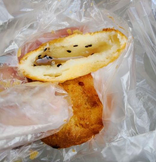 如果不帶熟人,還真找不到,位于市場(chǎng)最中間的位置。早點(diǎn)來(lái)可以趕上剛出鍋熱乎的炸糕,有白糖餡兒和紅豆餡兒,咬一口白糖餡兒都爆汁兒,幸福感來(lái)的那么快。