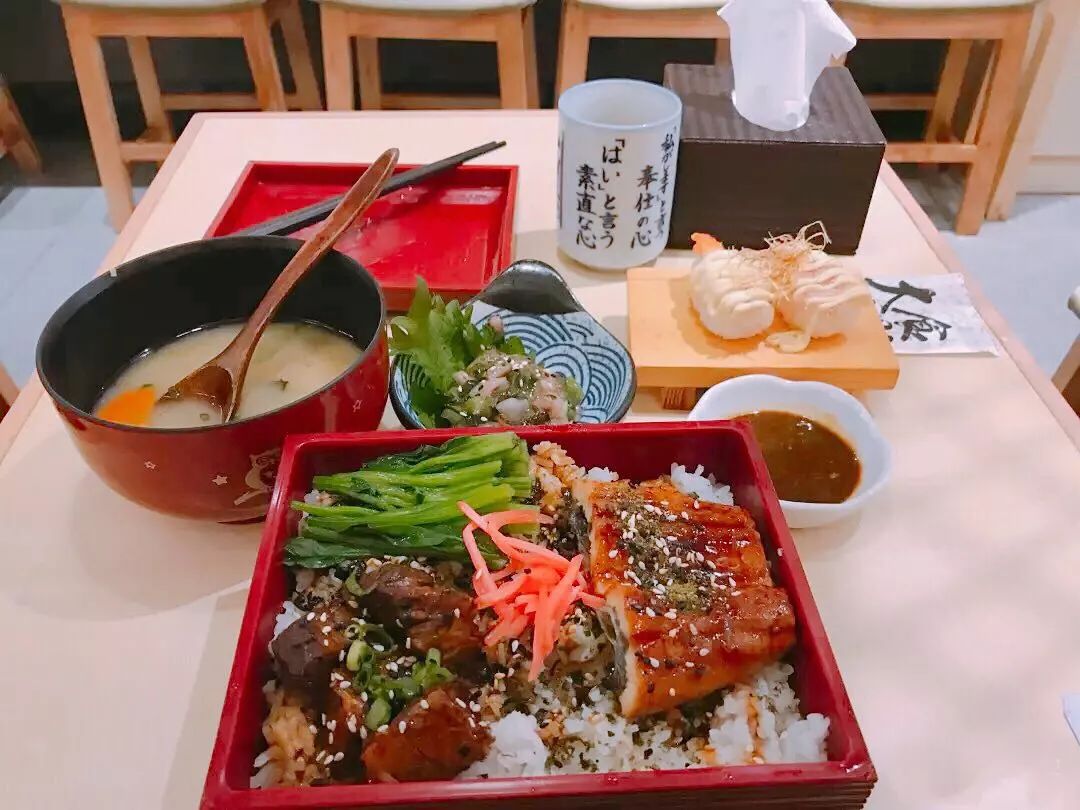 最喜歡鰻魚牛肉飯,甜咸口的醬汁拌米飯正好,魚肉香軟,牛肉軟爛,米飯顆粒分明有嚼勁,不過(guò)鰻魚有刺,吃的時(shí)候要小心。