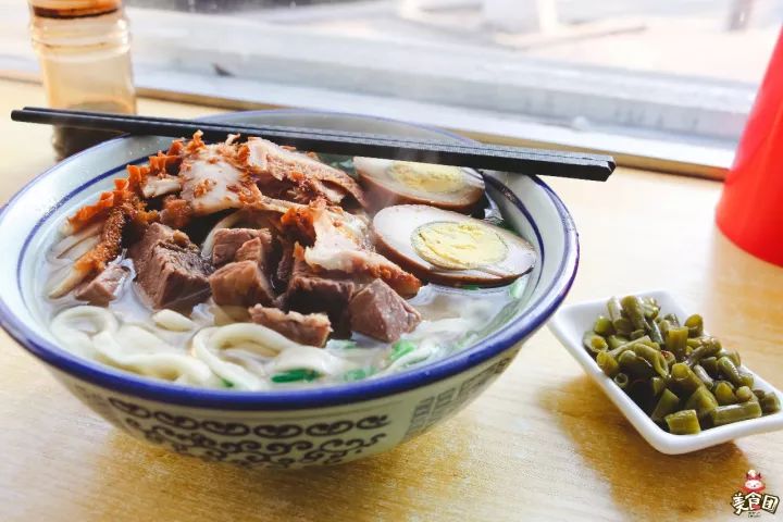飯爺最愛(ài)是全家福面。全家福的湯喝起來(lái)很清淡,但也是滿滿的肉香。這個(gè)湯頭是不換的,每天都在紅湯里換上大骨棒熬出來(lái),老湯出美味,也是我最愛(ài)的那口家常味道。