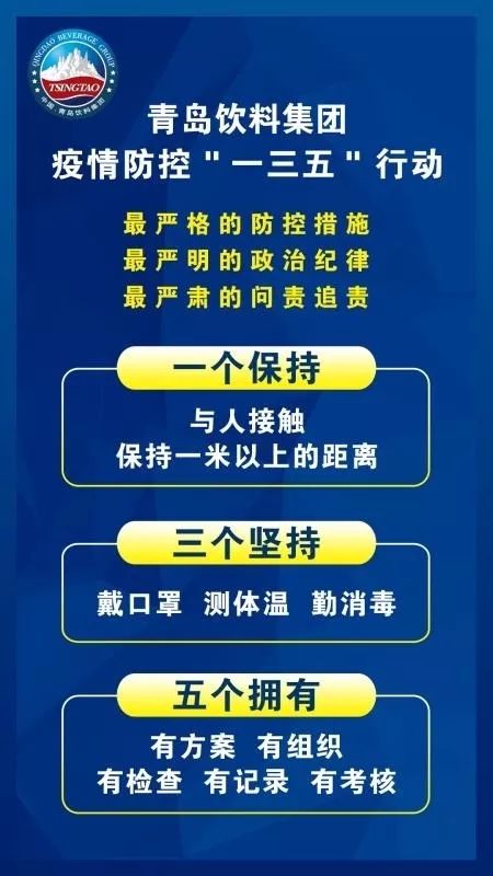 根據(jù)疫情防控形勢的發(fā)展,青島飲料集團(tuán)堅(jiān)決貫徹落實(shí)黨中央、省委、市委關(guān)于疫情防控工作部署要求,集團(tuán)上下在“三個(gè)最嚴(yán)”的指導(dǎo)思想下,不斷從制度建設(shè)和貫徹落實(shí)上強(qiáng)化疫情防控的要求。