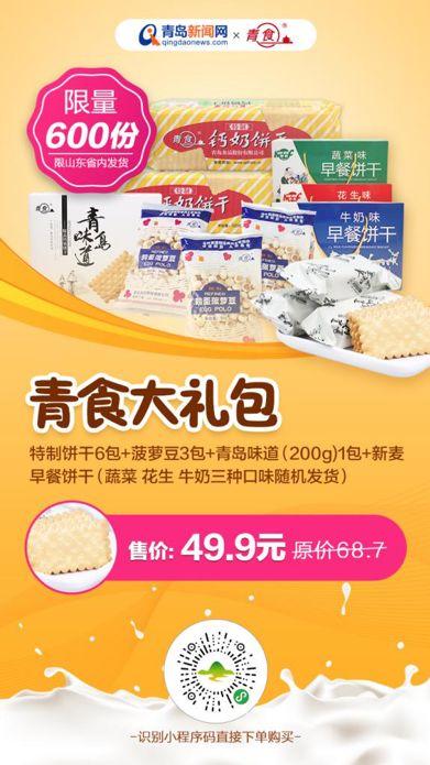 青食陪伴了四代人的成長,黃色為底的鈣奶餅干已然成為消費(fèi)者心目中的經(jīng)典。誰也不曾想,70年的青食,今天卻以一種煥然一新的姿態(tài)出現(xiàn)在直播鏡頭中。