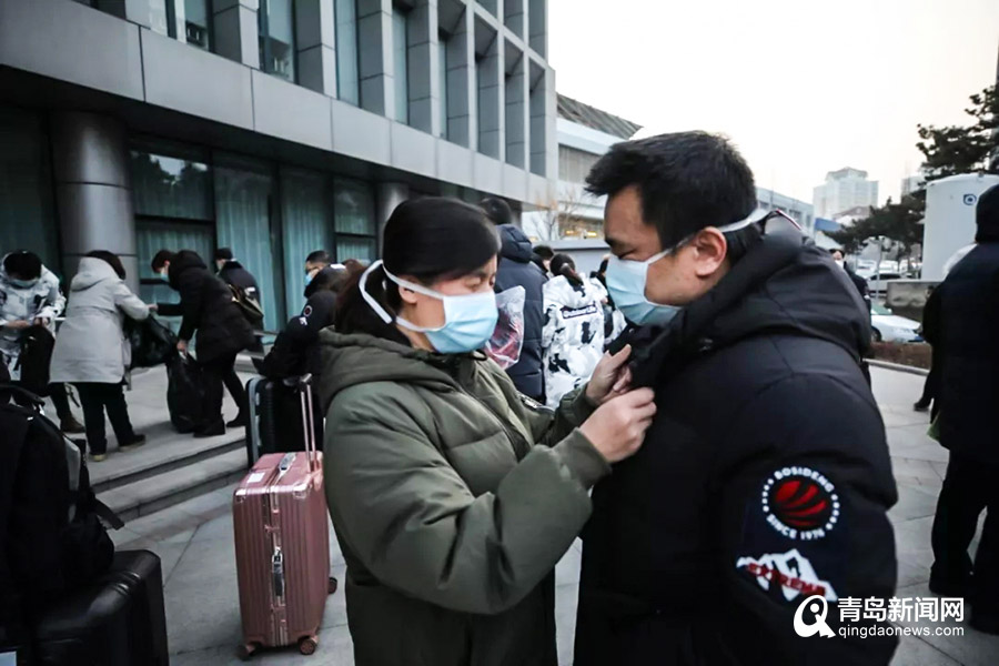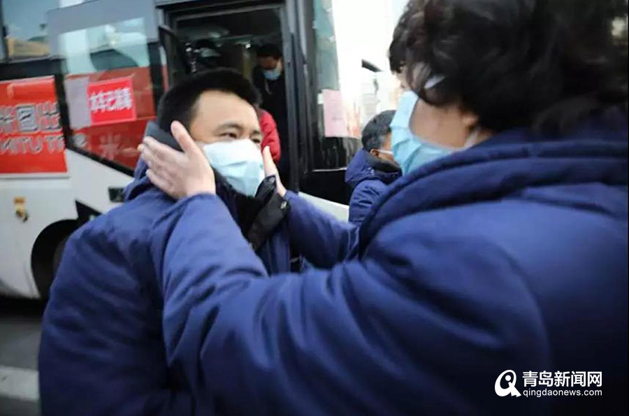 ▲2月9日,青島市市立醫(yī)院第二批醫(yī)療隊(duì)出發(fā)支援武漢,總院長(zhǎng)宣世英像囑咐自己的孩子一樣囑咐辛永寧:“記得每天向我報(bào)個(gè)平安”。因?yàn)槌霭l(fā)匆忙,現(xiàn)場(chǎng),辛永寧醫(yī)生只留下了幾張模糊的影像。