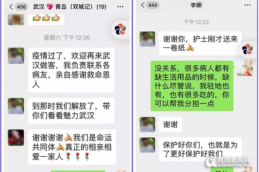 “疫情過了,歡迎再來武漢做客,我負(fù)責(zé)聯(lián)系各位病友,親自感謝救命恩人”、“我們是命運(yùn)共同體,真正的相親相愛一家人”、“你們是用自己的命來?yè)Q我們的命”……