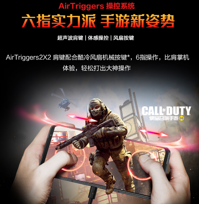 本次發(fā)布的騰訊ROG游戲手機5Pro和幻影更是創(chuàng)造性地在手機背部增加操作區(qū)域,在背面設計了兩個滑動“腰鍵”,加之標志性的AirTriggers超聲波雙肩鍵,為手游玩家解鎖六指“新姿勢”