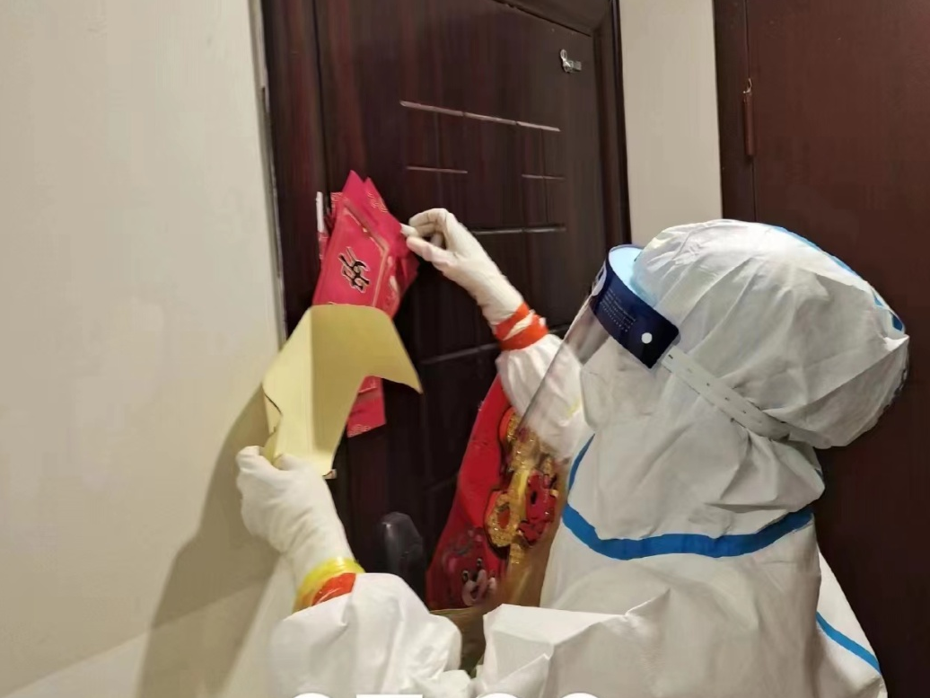 機(jī)關(guān)干部持續(xù)發(fā)揚同心戰(zhàn)“疫”精神,積極參與核酸檢測,尤其是與網(wǎng)格員、醫(yī)務(wù)工作者一起做入戶采集核酸工作,他們負(fù)責(zé)掃碼錄信息,向隔離人員遞交居家隔離告知書、承諾書,叮囑他們居家期間遵守告知書上的相關(guān)規(guī)定,做好個人防護(hù)和保持個人衛(wèi)生,不得隨意出門。穿著防護(hù)服上樓下樓也成了他們在社區(qū)工作的日常,有很多機(jī)關(guān)干部高度近視,穿防護(hù)服出去鏡片上總是起霧,為了克服這個問題,有的就干脆不戴眼鏡,看不清就摸著墻走。11月底氣溫驟降,他們每天凌晨三四點鐘就要起床給幾棟樓三四十戶居民上門采樣,一趟下來便汗水連連,可沒有一個人叫苦叫累。核酸采樣工作結(jié)束后,他們還要對居家隔離人員進(jìn)行巡查,查看封條有無破損,了解居家隔離人員生活需求,盡可能解決實際生活困難。