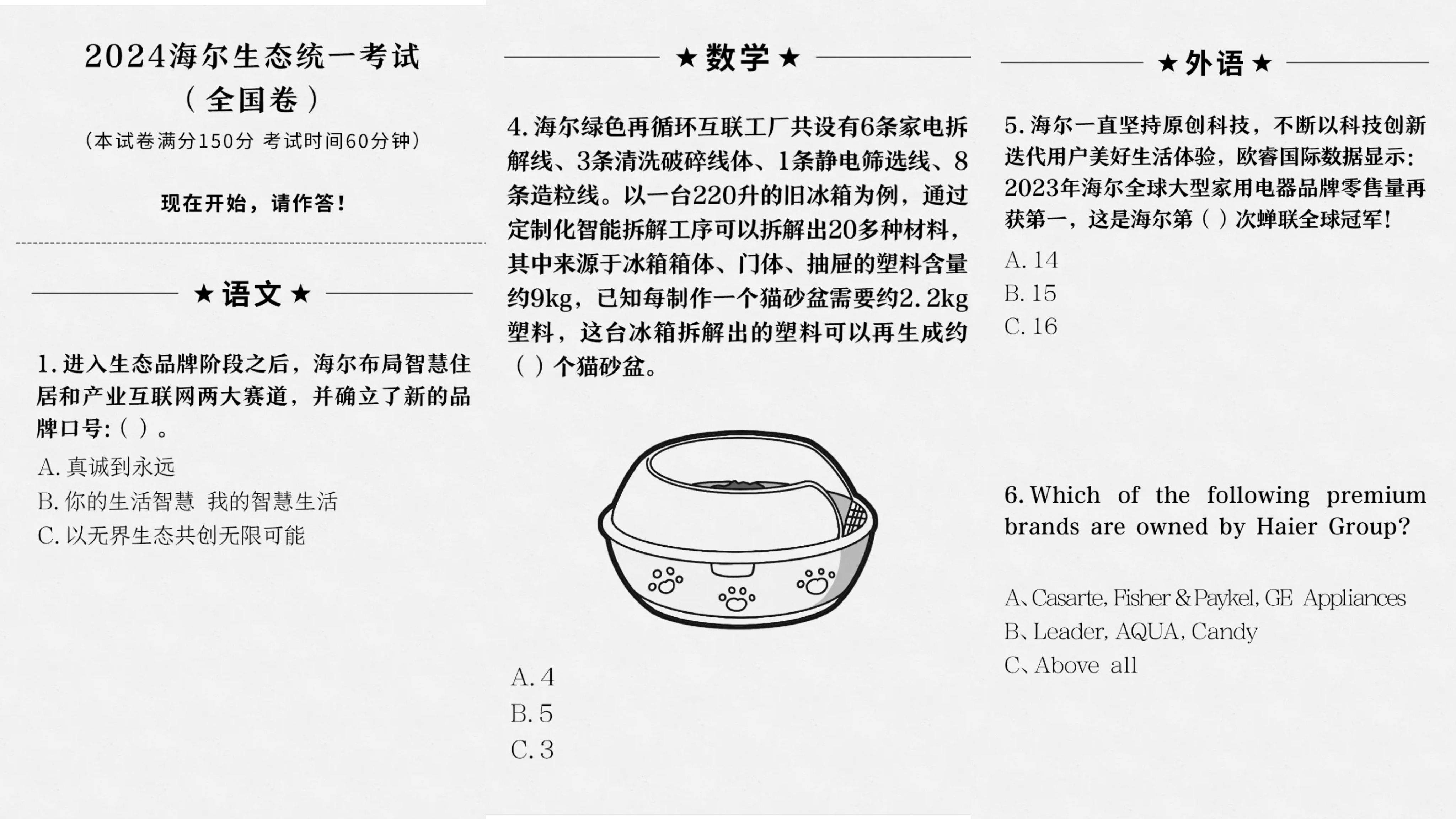 海爾高考卷【40年限定版】來(lái)了,試試你能考多少分?