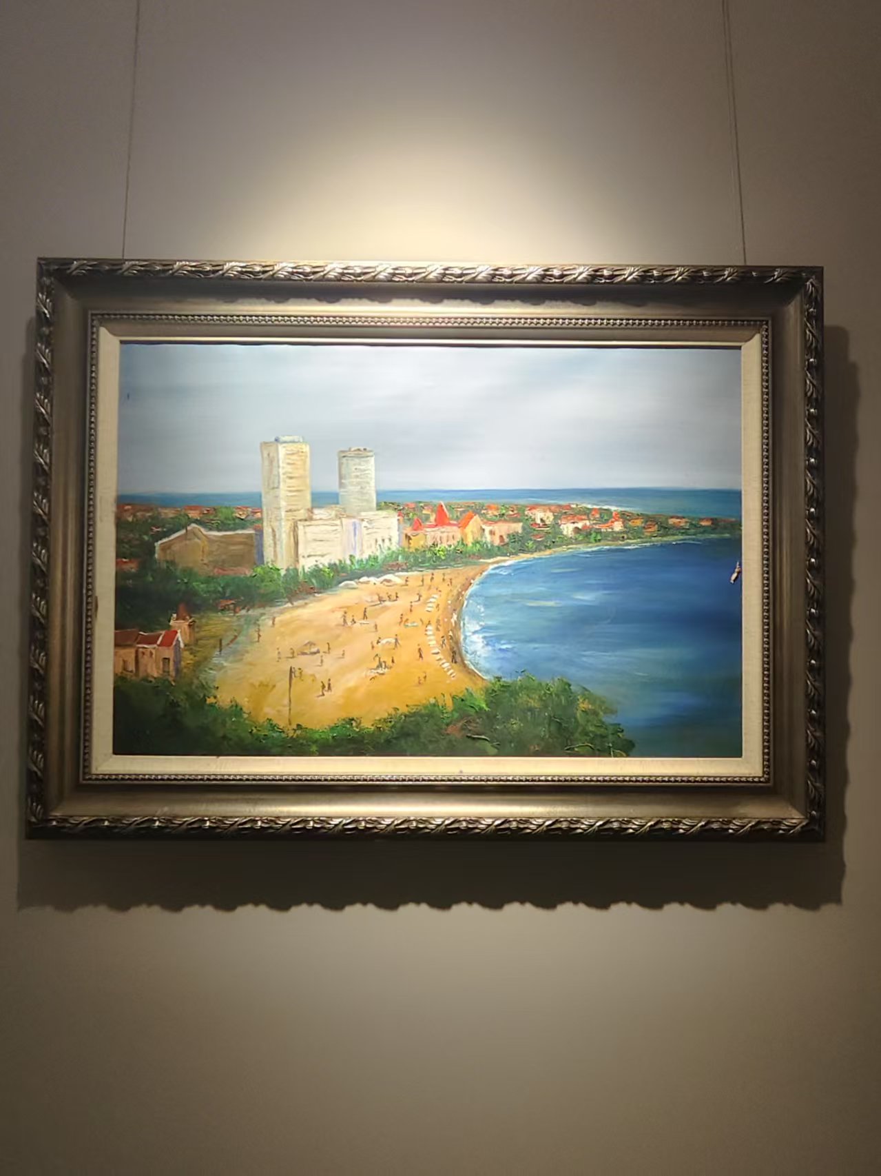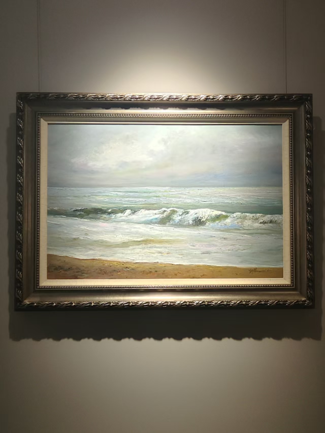 邱慧老師的油畫,將青島的浪漫凝固在畫布上——老城區(qū)的紅瓦在夕陽下泛著橘粉,海浪的肌理仿佛能沾濕指尖,這些作品是明信片,是城市記憶的私人注腳。