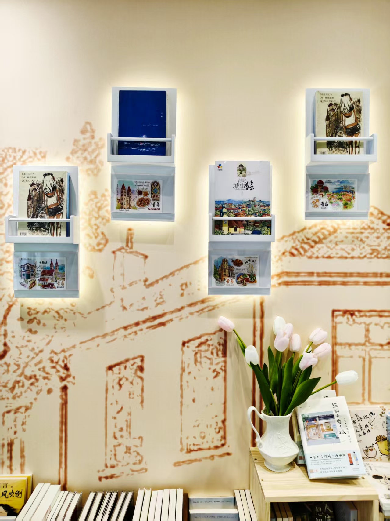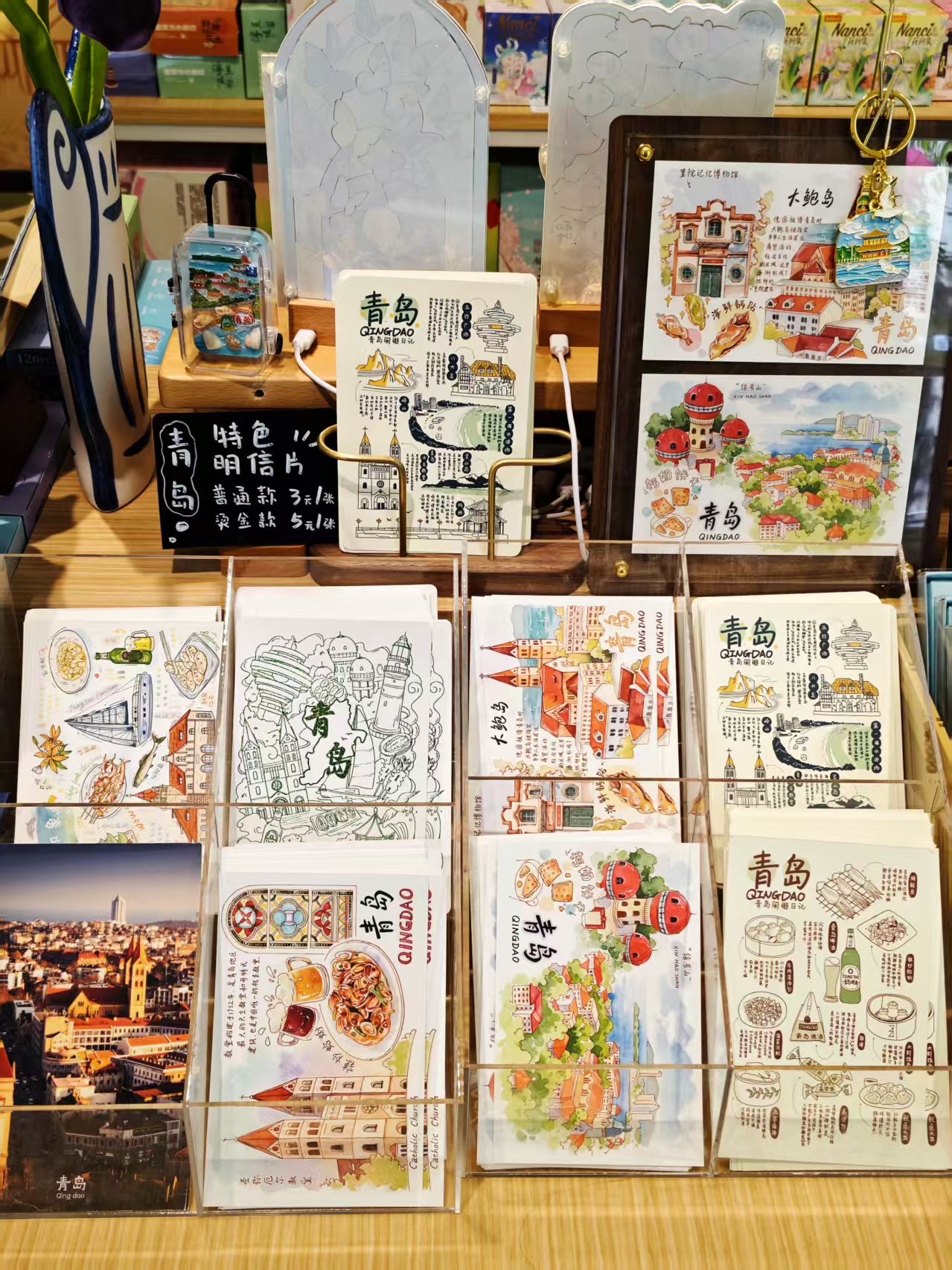 這次回歸,依舊是熟悉的文藝感,但驚喜更多。一整面墻的原創(chuàng)信片——青島限定插畫款、旅行主題、治愈系手繪……
