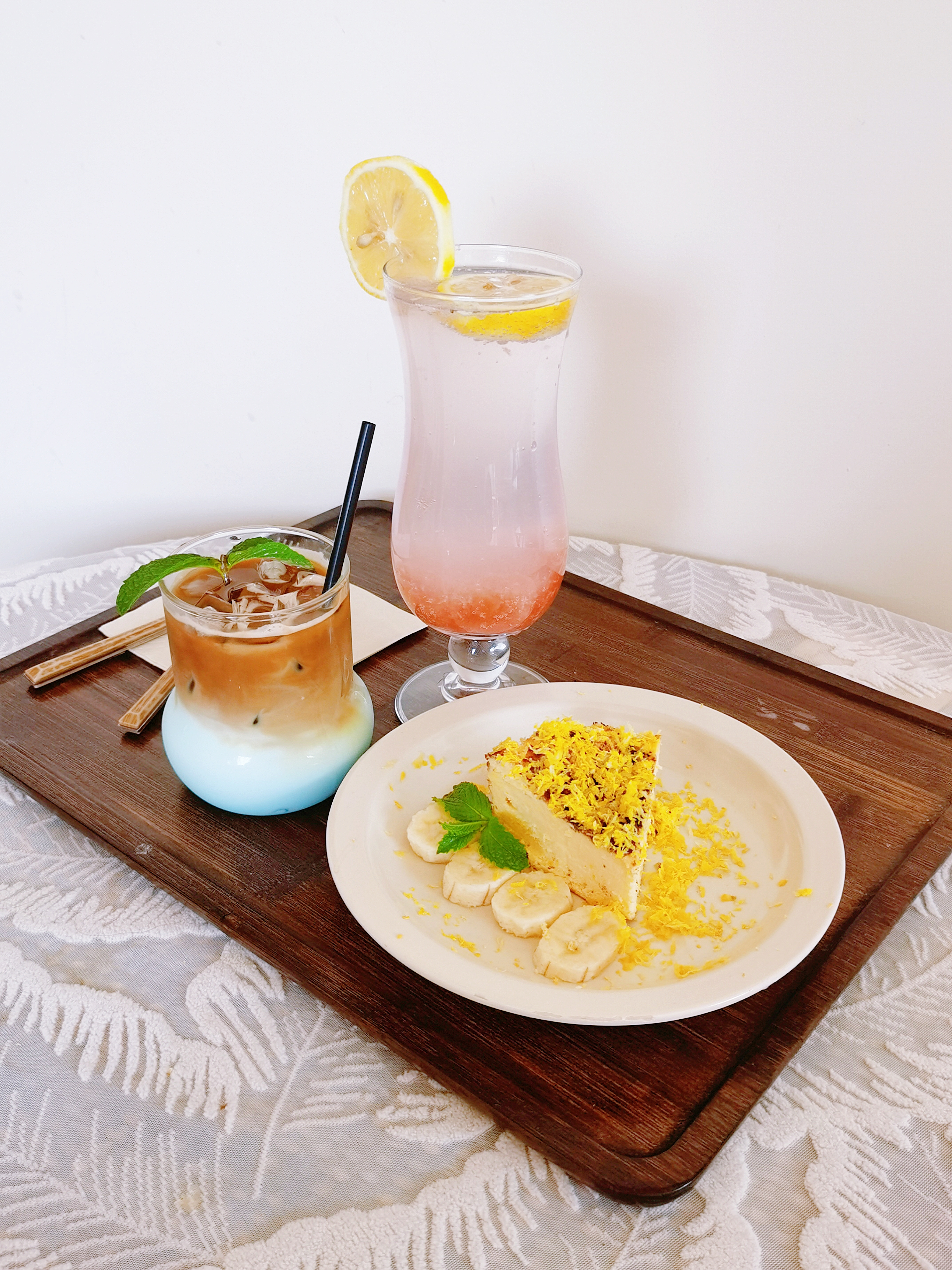 氣泡水,夏季清涼首選,性價比非常高;招牌MOYU拿鐵,味道濃郁醇厚;還有清香的茶飲可供選擇。甜品都是手工制作,巴斯克蛋糕細膩絲滑……也會偶遇“餛飩”。