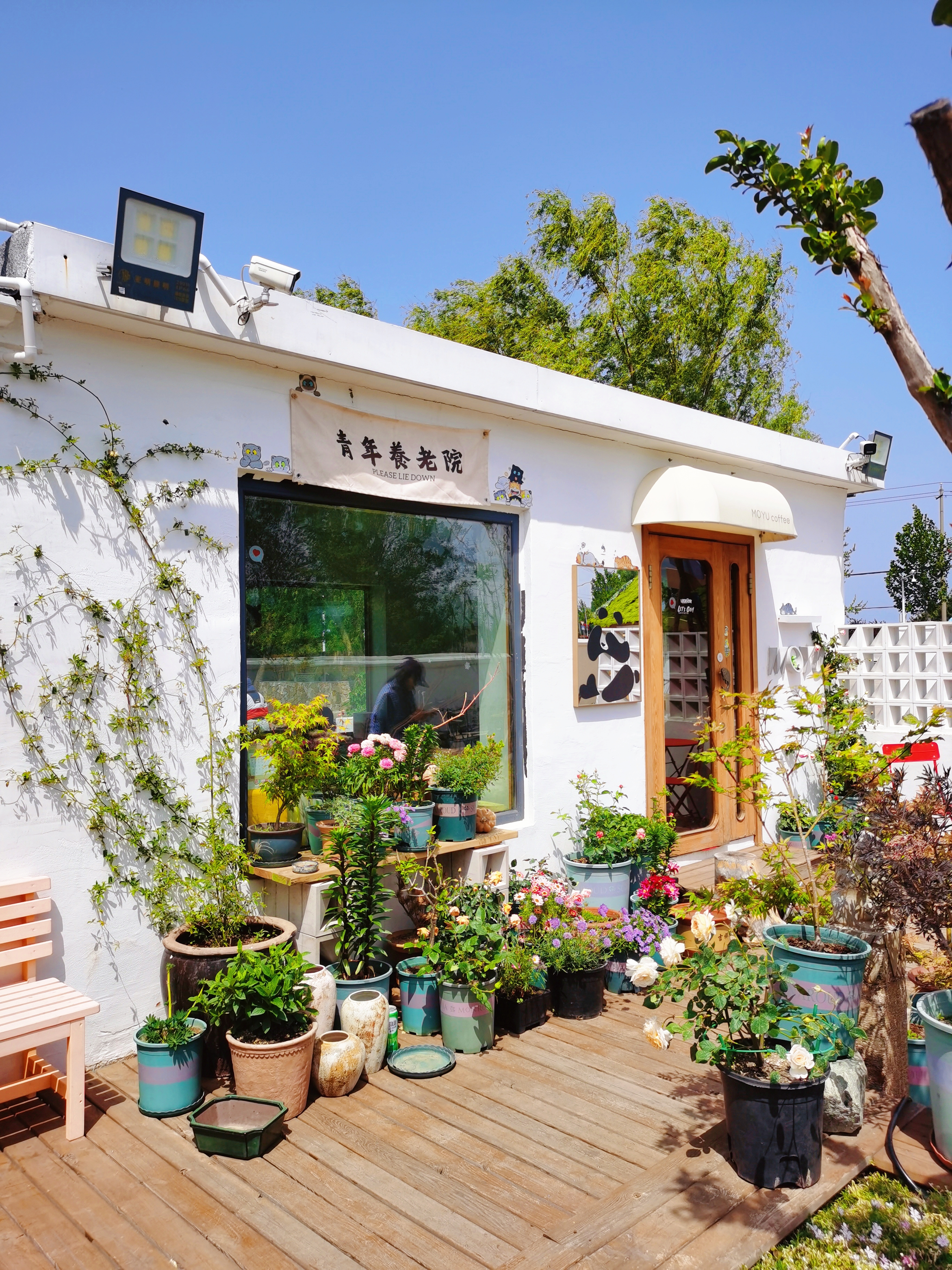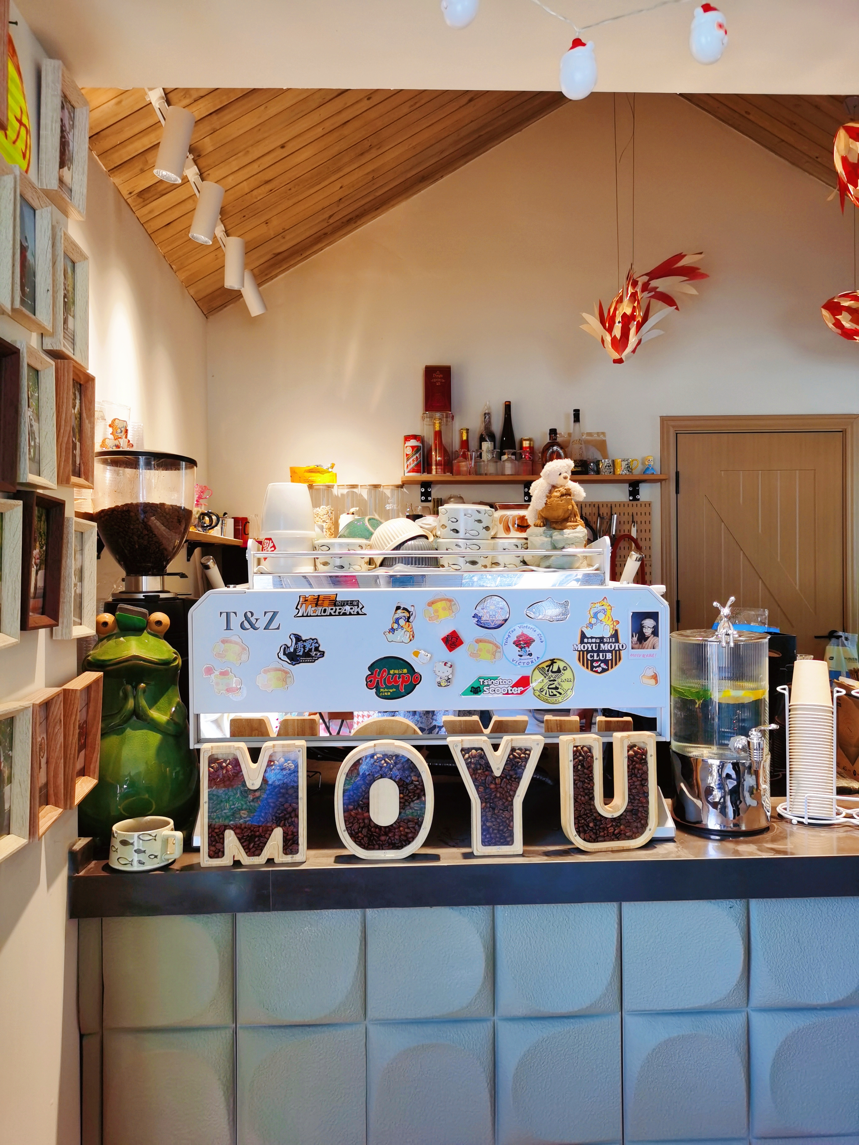 藏在嶗山腳下的田園風咖啡館,MOYU,院子里有池塘、草坪和慵懶的小貓,點一杯咖啡 坐在樹蔭下發(fā)呆,四周都是空曠的山野,看山聽風 等一場日落。