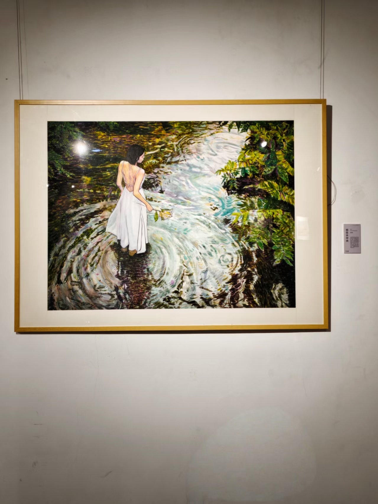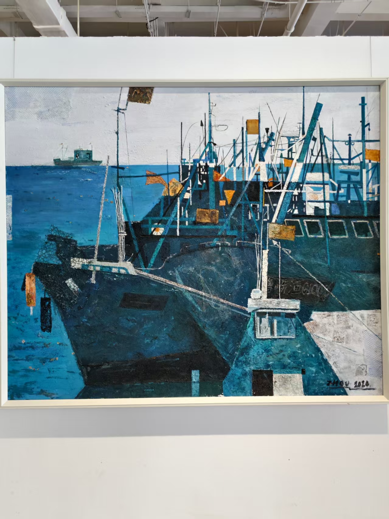 欣賞巨型油畫《泊岸》時(shí)別站太近,輪船的桅桿會把你拖進(jìn)深藍(lán)里。