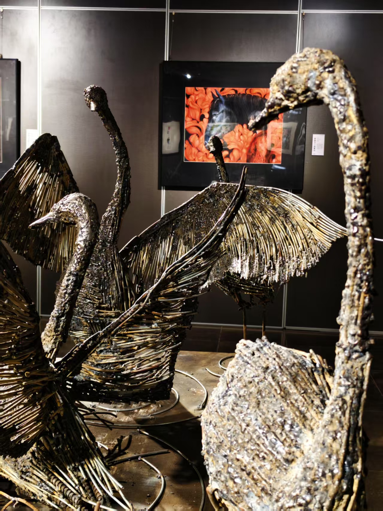 楊澤蓉和周吉凡的竹編山形《青山竹跡》,擺在展臺上但好似飄在空中,竹篾補(bǔ)的不是礦坑,是工業(yè)時(shí)代漏風(fēng)的記憶。